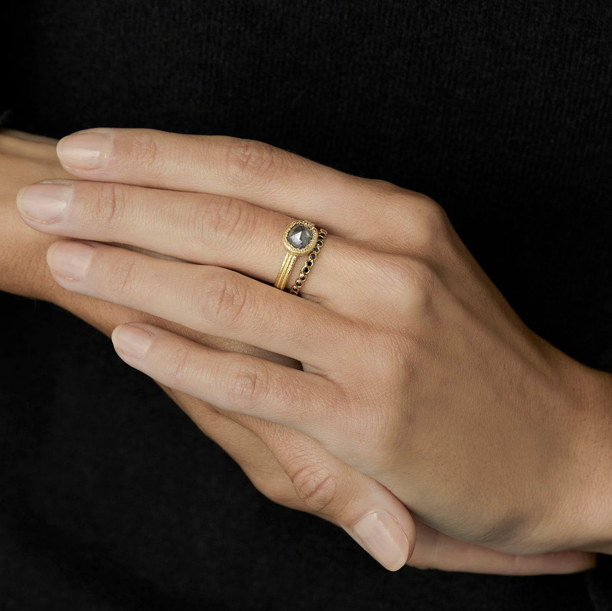This year, we're celebrating the 10th anniversary of our Tribeca studio/showroom opening. Reflecting on those early days, Satomi has created a collection that incorporates plenty of textures and primitive touches, showcasing her distinctive style. Each piece carries subtle distortion and imperfection, enhancing its charm and evoking the warmth of the human hands that crafted them. The carefully selected oval and round rose cut diamonds, chosen for their individuality in cut, color, and shape, will captivate you. These unique rings will take your breath away!