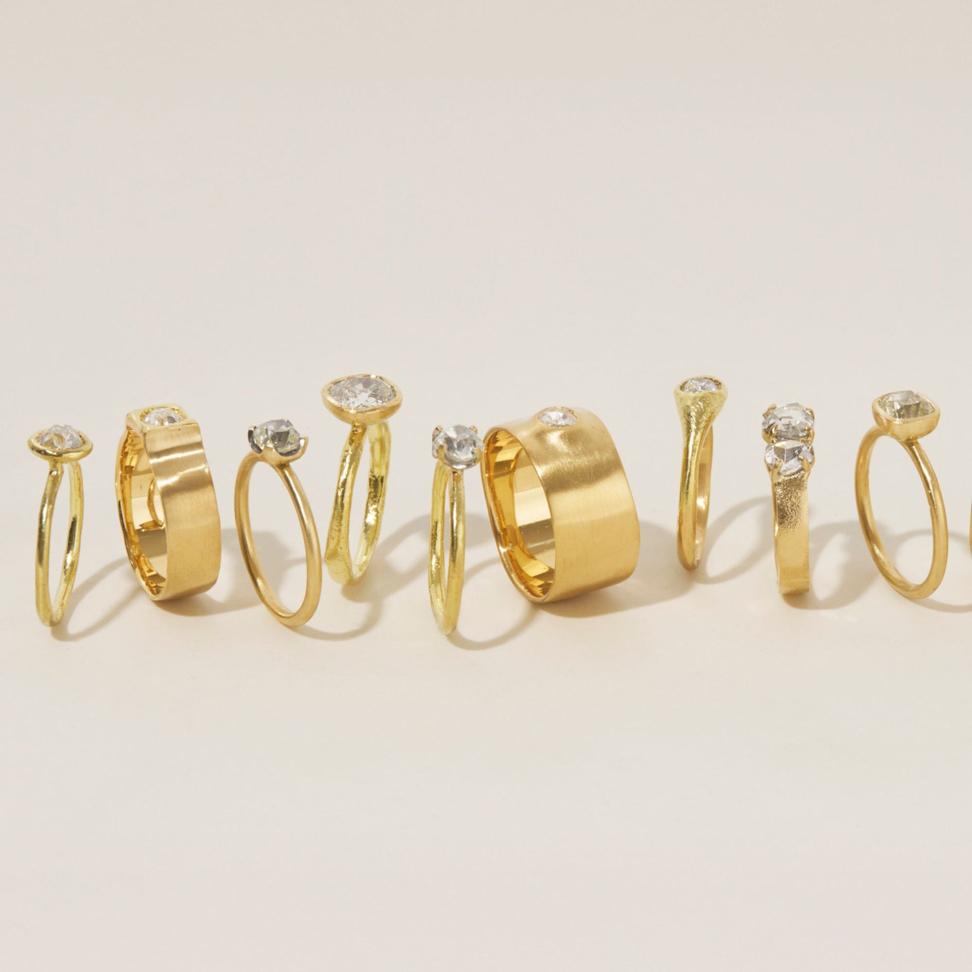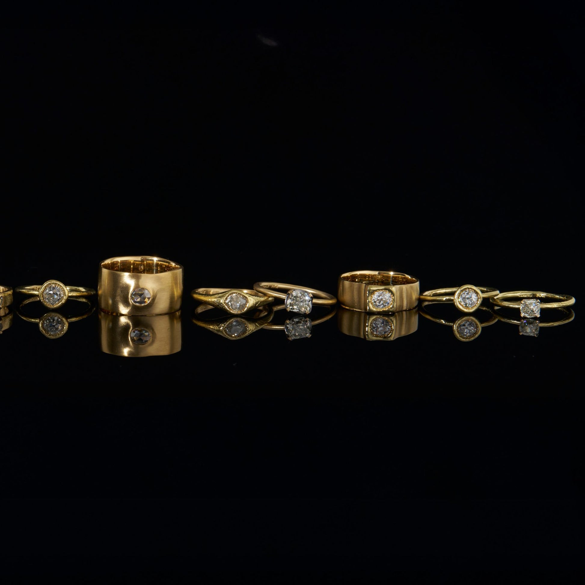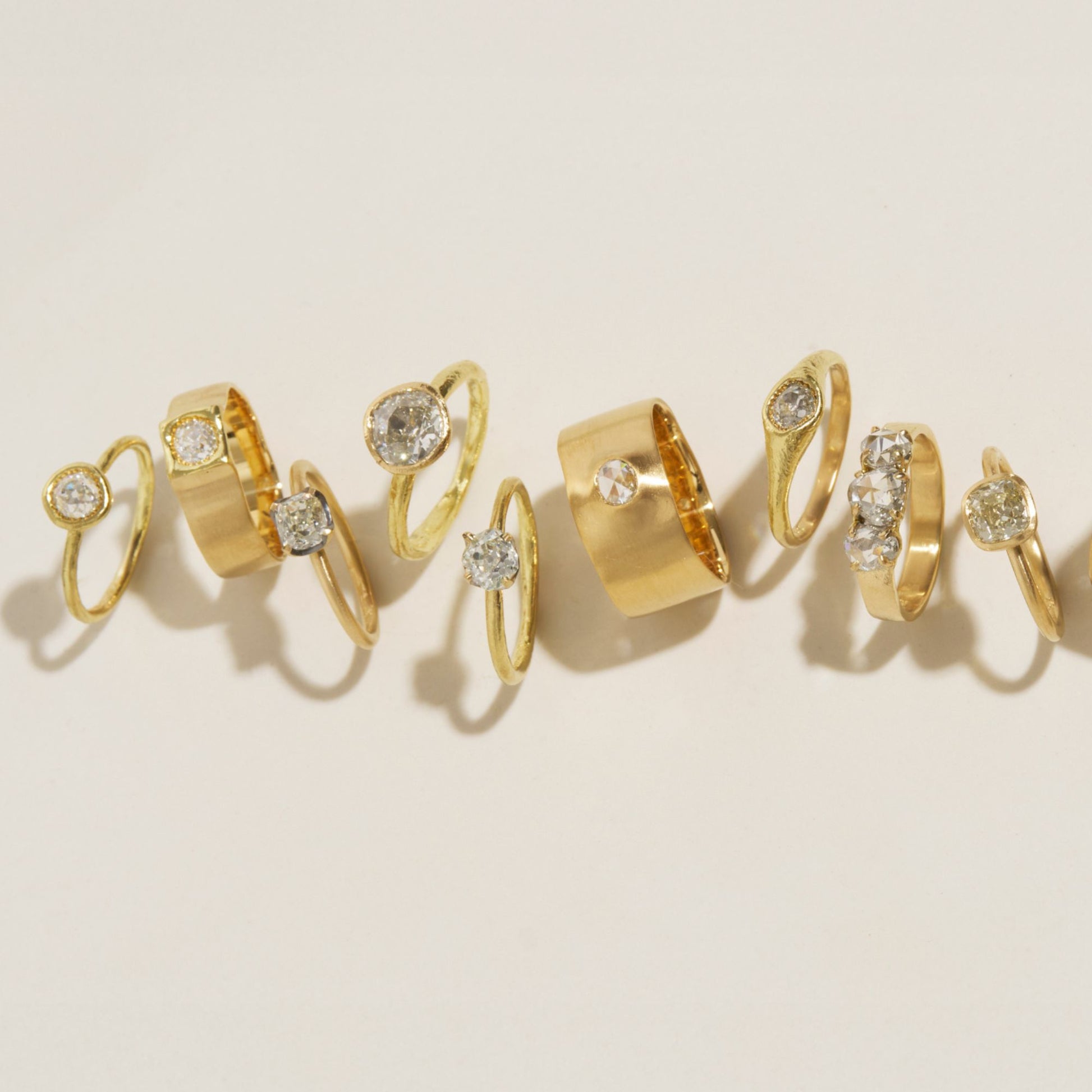 This collection features diamonds cut in historic styles such as Old Mine Cut, Old European Cut, and Rose Cut—cutting traditions developed before the standardization of modern brilliance.