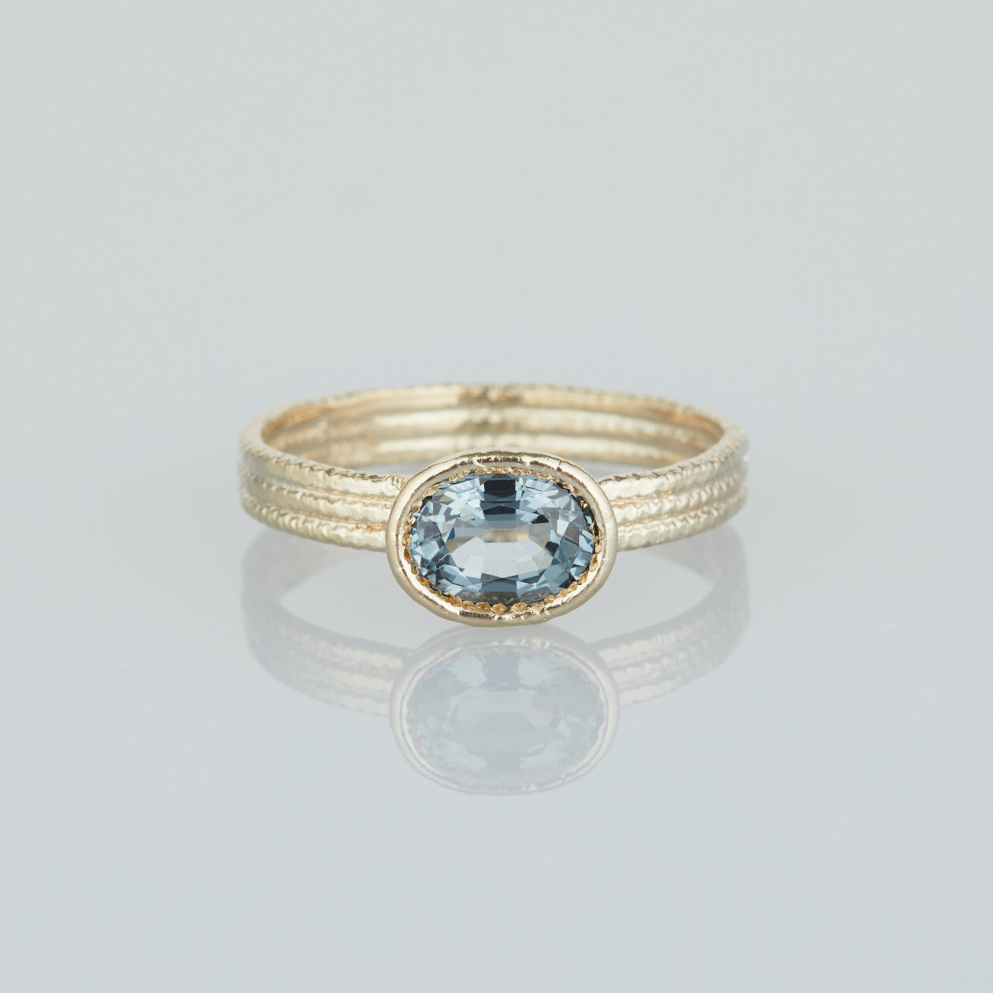 When most people think of sapphires, the deep blue color often comes to mind. But sapphires naturally occur in a wide spectrum of colors, each with its own story to tell. Our One-of-a-Kind Oval Cut Sapphire Ring features a hand-selected stone, set in 18K white gold to bring out the soft, delicate tones of each sapphire.