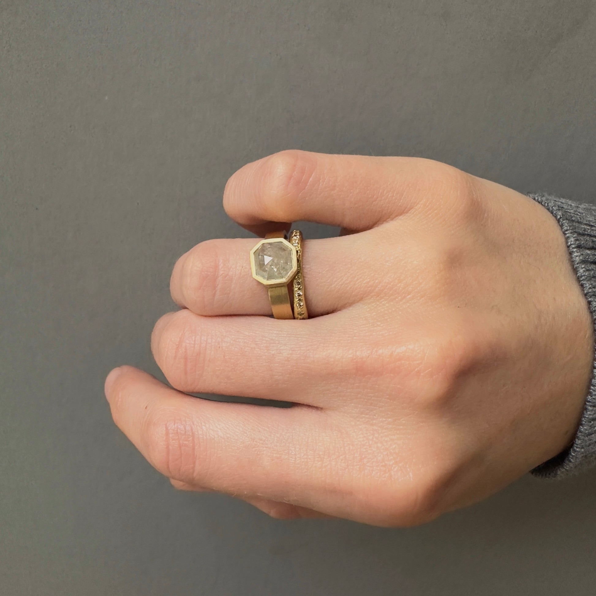 Each One-of-a-Kind Rose Cut Diamond Ring features natural inclusions formed deep within the Earth over hundreds of millions of years, creating a unique expression in every stone. Set in a metal chosen to complement its natural hue, the new open-back design allows light to move through the diamond, revealing its inner world and shifting its appearance with every angle.