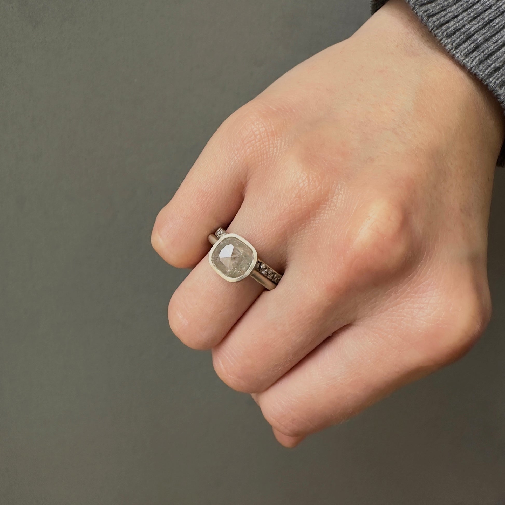2.75 Carat One-of-a-Kind Rose Cut Icy Grey Diamond Ring