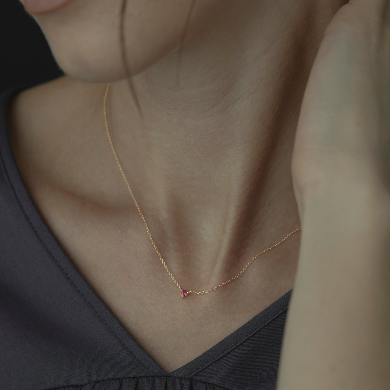 For the perfect minimal pop of color, our Ruby Birthstone Necklace features July’s birthstone in the subtlest of ways - great for layering, or beautiful on it's own.
