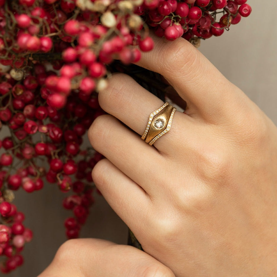 Softly curved with an organically textured finish and a uniquely faceted rose cut diamond, our 5mm White Diamond Rose Cut Curva Ring is a statement of beauty all of it’s own.