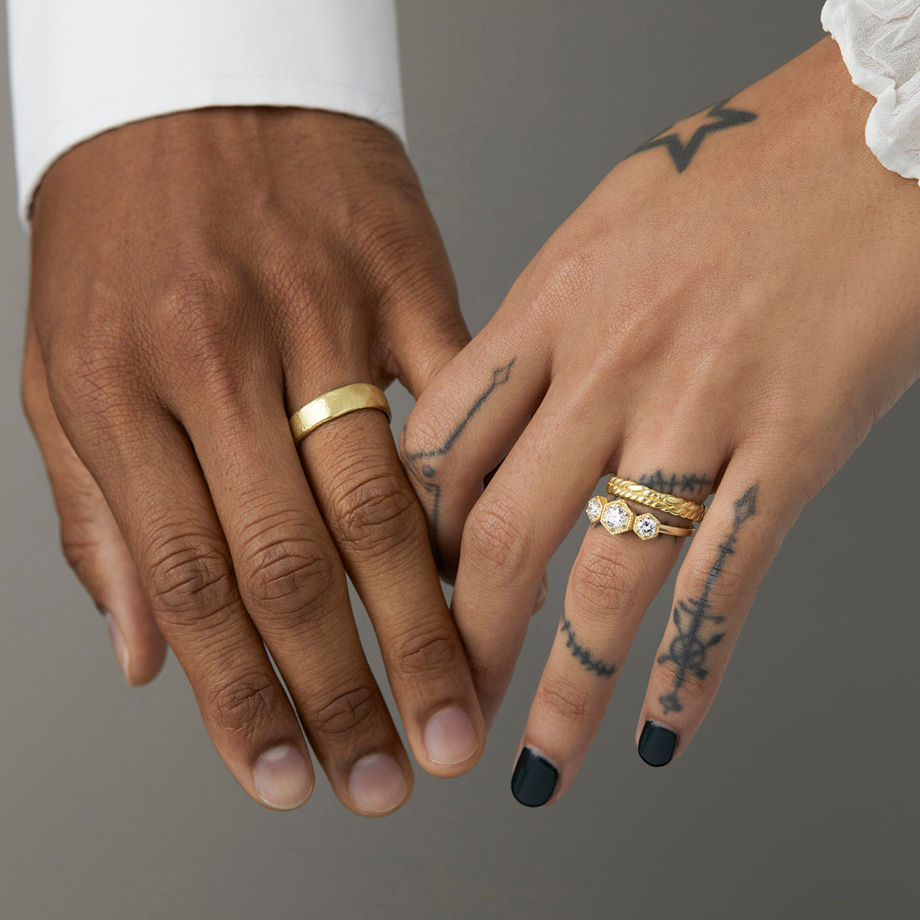 The 6mm Organic Textured Band features a beautifully crafted, naturally inspired texture and works well as a wedding band or a chunky ring to add to your stack.