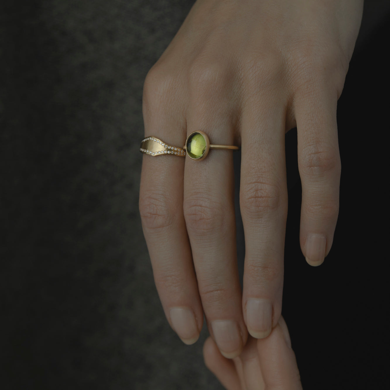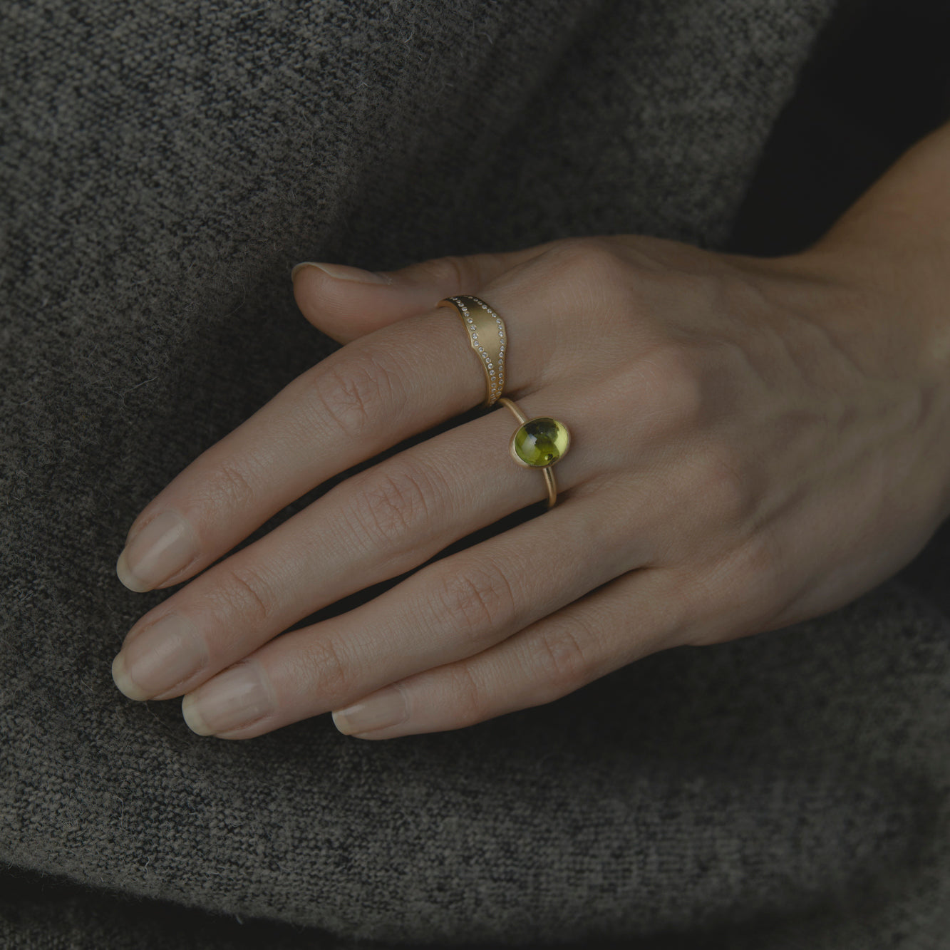 ["$1000 - $2000","18K Yellow Gold","Dulcis","engraving","Fashion bands with stones","Matte","Peridot","Ring","Size 7 and above","Textured","VIP"]