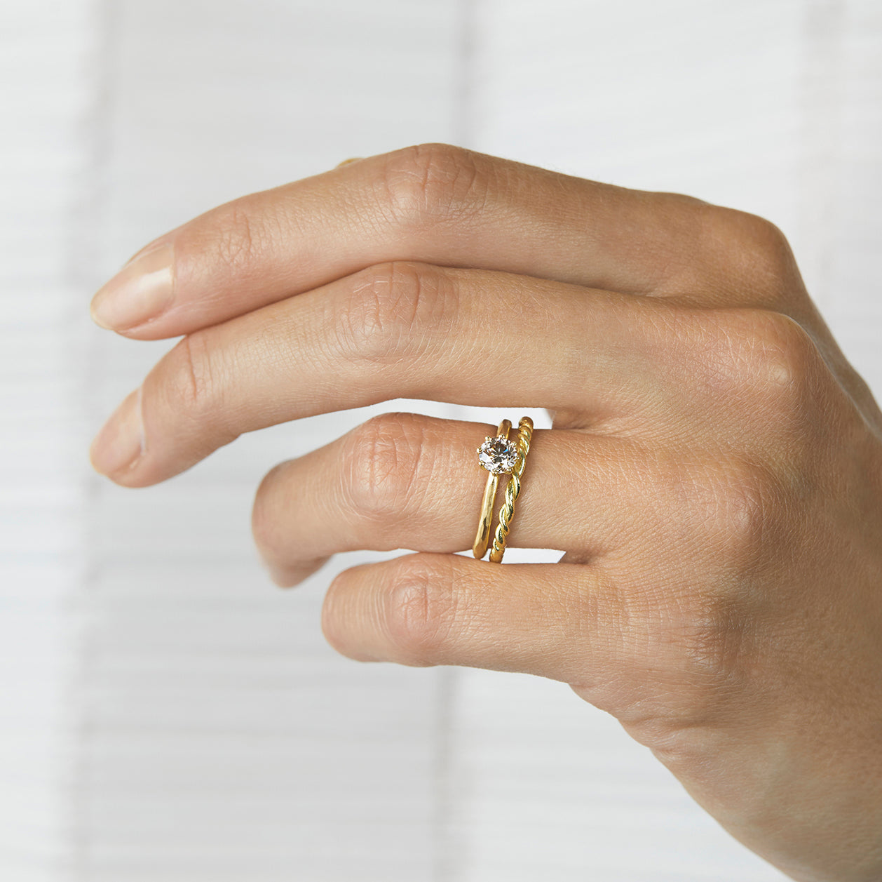 Simple yet sophisticated, this delicate ring can be worn alone as a statement piece or as part of a collection of stacking rings for a more contemporary look.