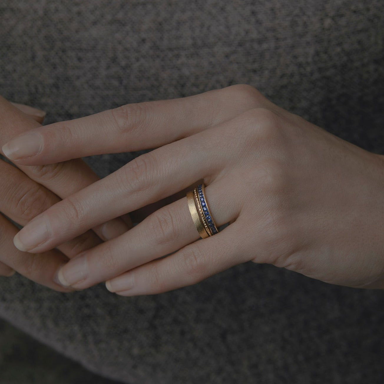Characterized by undulating curves and stones in a variety of sizes, our Absolute Band showcases the infamous beauty of blue sapphire, reminiscent of the deep blue sea.