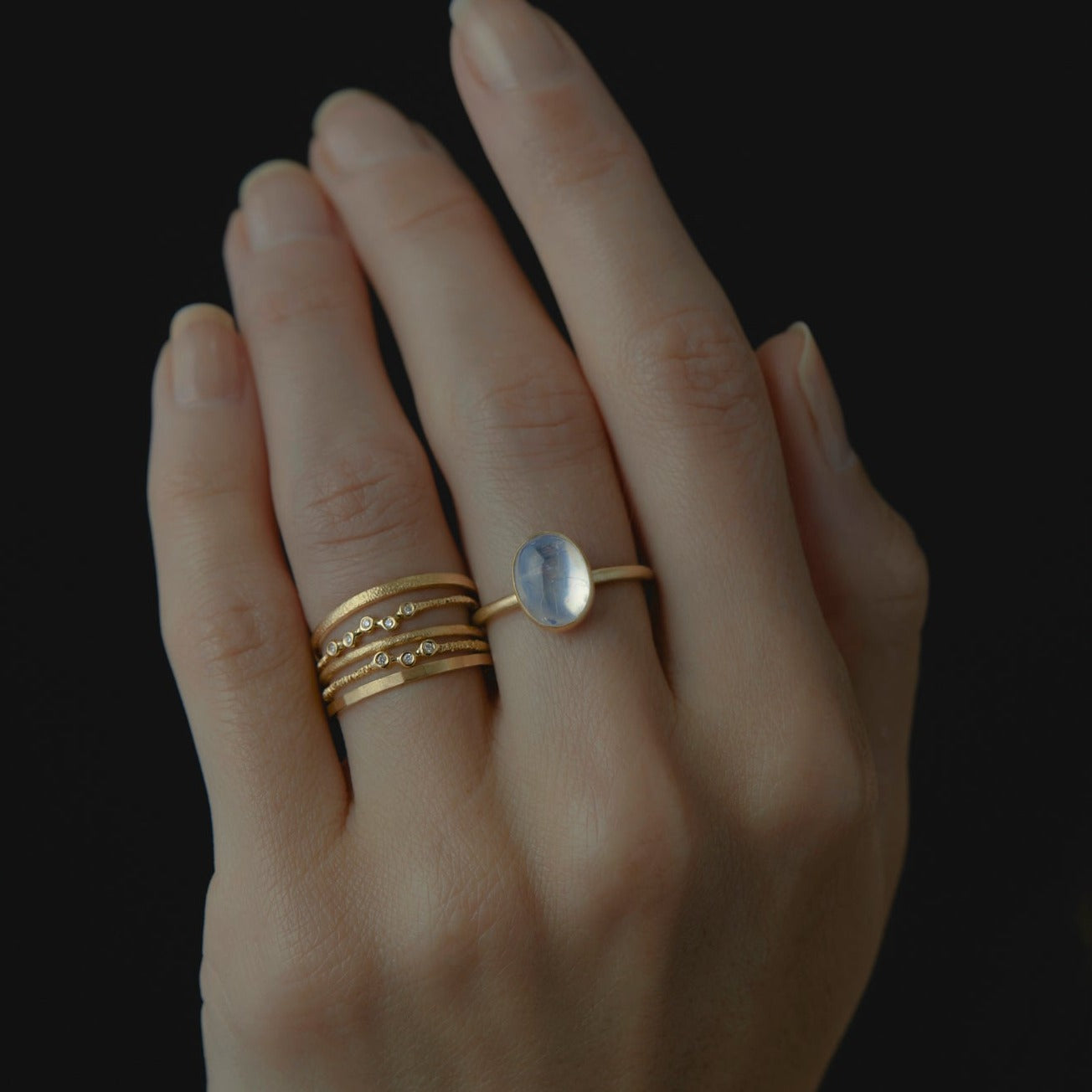 Textured yellow gold woven together with tiny, sparkling, brilliant diamonds, our Woven Three White Diamond Ring is lovely worn alone or paired with your favorite rings.